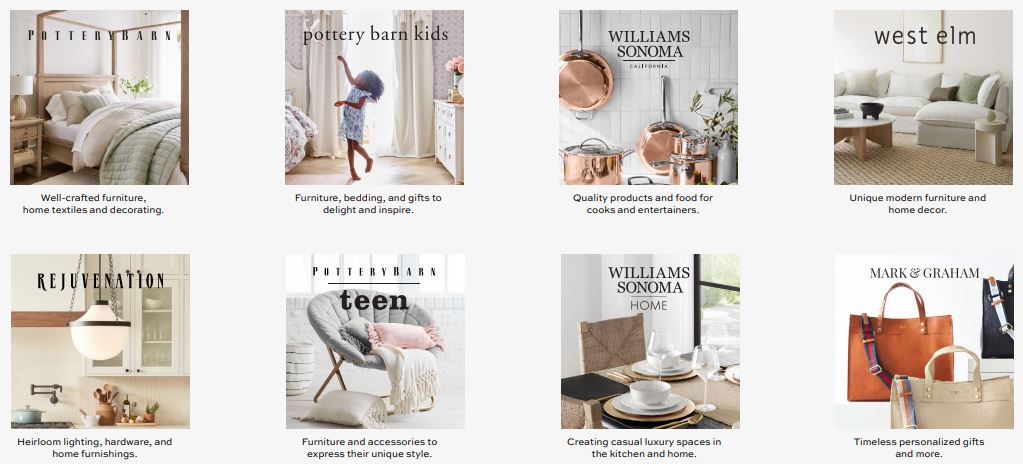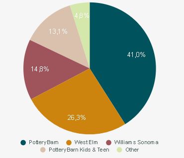El segmento con más ventas, con diferencia, es Pottery Barn, que incluye muebles de todo tipo, ropa de cama, iluminación y esas cosas que gustan tanto a la gente para la decoración de casas.