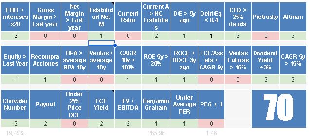 La rentabilidad del dividendo de la compañía no ha sido especialmente alto hasta ahora, pero con la caída de un 42% de la cotización entre finales del 21 y ahora, esta ha alcanzado un interesante 3%. Además, su CAGR 5y es de un 16,5% y por tanto la suma de los valores roza el 20%, 8 puntos por encima de lo que buscamos.
